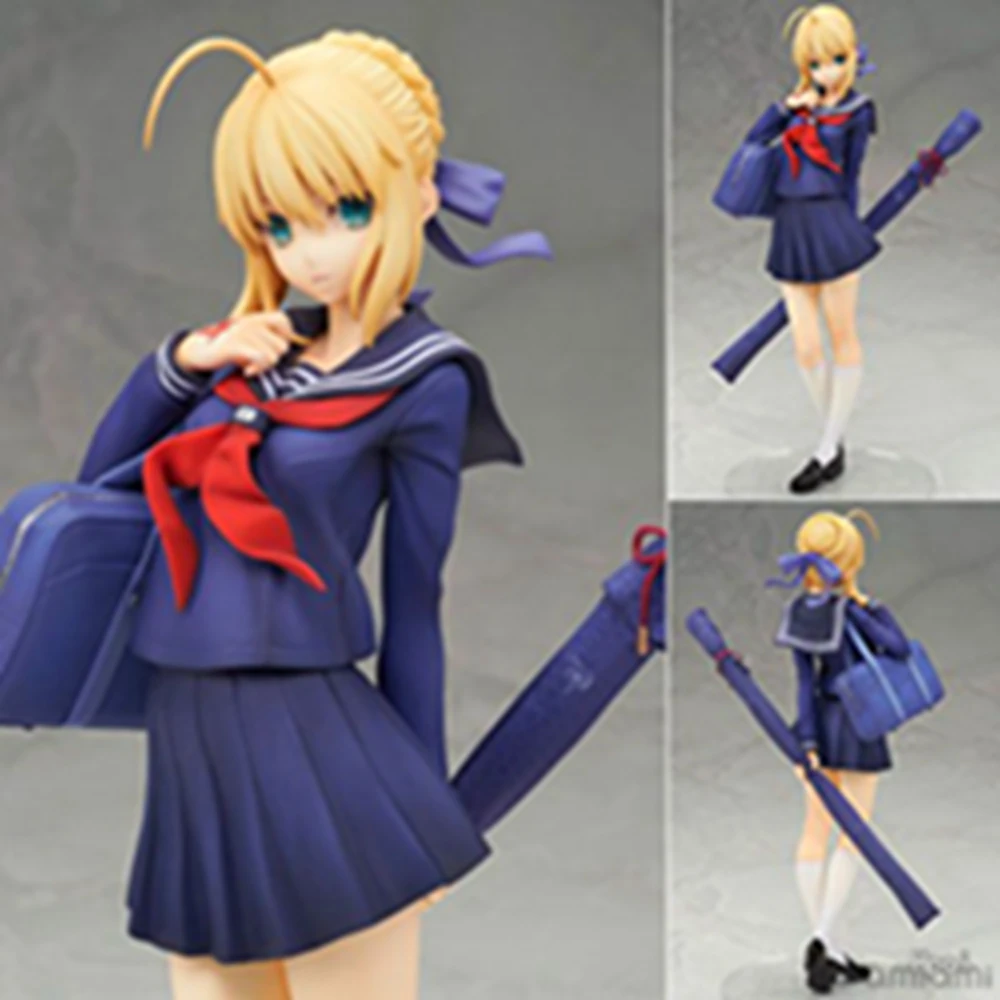 22CM Anime Fate/Stay Night Altria Pendragon Figure 1/7 School Uniform Dress Up Model Toy Gift Collection Action Figure PVC