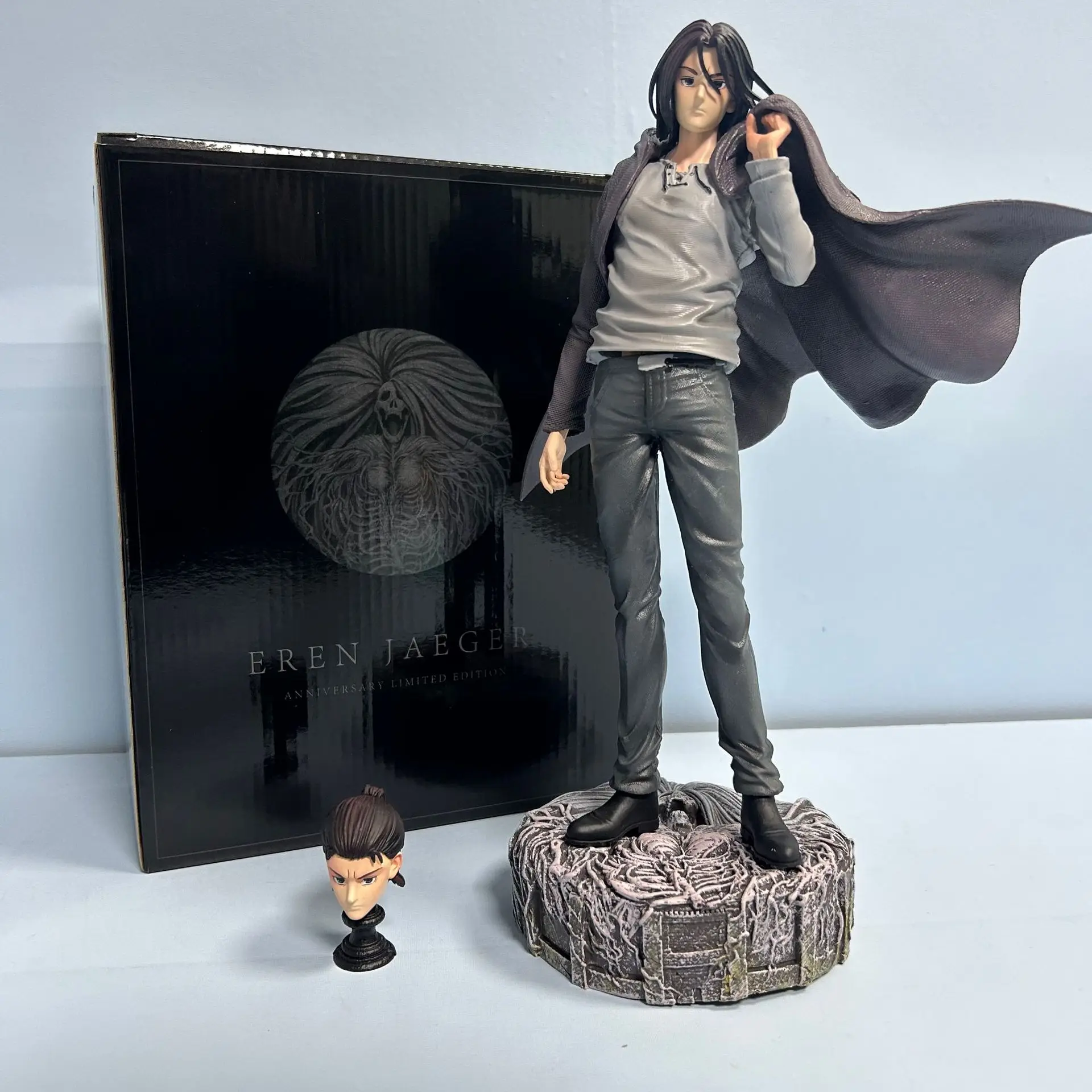 30CM Anime Figure Attack On Titan Eren Jaeger Figure Standing Suit Dress Up Interchangeable Head Model Toy Gift Action Figure