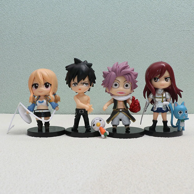 4Pcs Anime FAIRY TAIL Figure Etherious Lucy Heartfilia Model Toys Erza Scarlet Gray Fullbuster Set Desktop Decorations