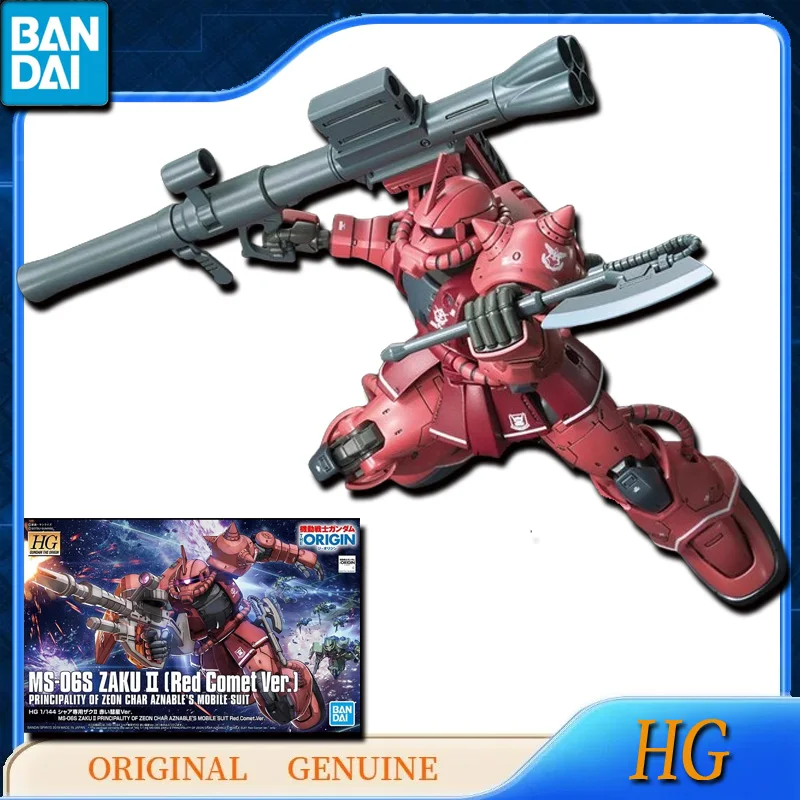 Bandai Original Genuine HG GUNDAM MS-06S ZAKU 2 Red Comet Ver. Anime Action Figures Toys for Kids Gift Assembly Model Ornaments